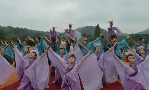 演员正在祭禹现场唱颂歌、献祭舞。(袁云 摄)