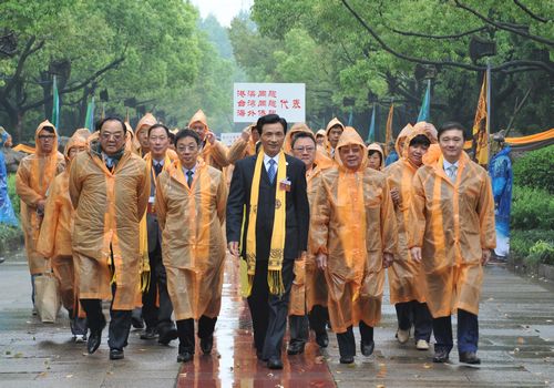 港澳同胞,台湾同胞及海外来宾冒雨前来参加公祭大禹陵。