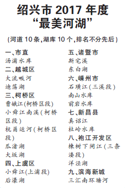 据了解,为深入贯彻落实市委市政府“治水创样板,三夺大禹鼎”决策部署,展示我市“五水共治”工作成效,挖掘宣传身边的治水典型,大力营造全民参与“五水共治”的浓厚氛围,今年1~2月,市治水办(河湖长办)在全市范围内组织开展了绍兴市2017年度“最美河湖、最美小微水体、最美护水人、最美河湖长”评选活动。