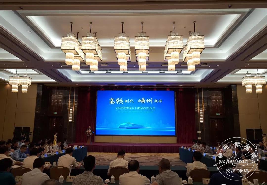 6月15日下午,我市召开2018城市土地招商发布会,以“高铁时代嵊州期待”为主题,向市场隆重推出11块黄金宝地,吸引了恒大、碧桂园、万科、绿地、绿城、新城、融信等48家市内外房产开发商参加。