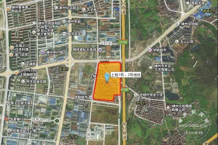 上杨1号、2号地块:该宗地块位于城南核心区,东至信杨路,南至领带园一路,西四海路,北至兴盛街,交通便捷。周边有嵊州市行政中心、三江街道中心小学、嵊州市三江街道中心卫生院和越天地艺术城等完善的教育、医疗和商业配套。